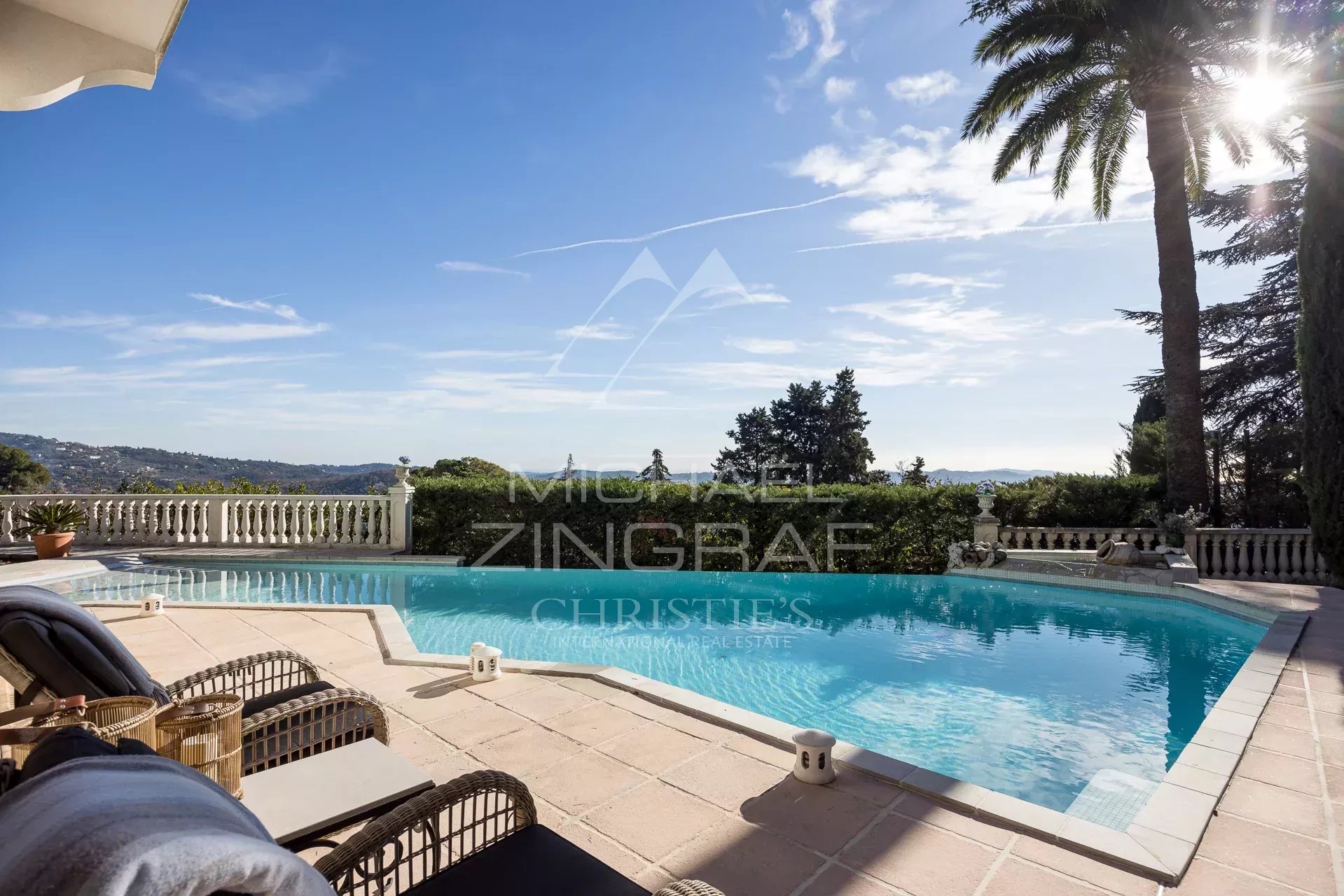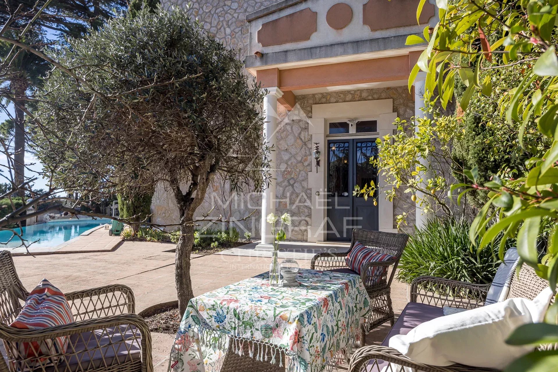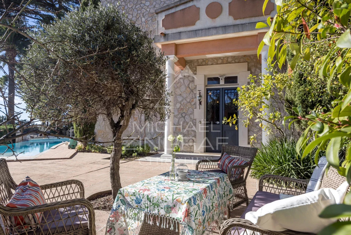 This elegant Provençal farmhouse (Mas) is a true gem, offering 236 m² of living space within a total area of 548 m², and boasting breathtaking sea views thanks to its elevated position. Exuding classic French charm with its high ceilings, this property features six bedrooms, a double living room, and a dining room, making it perfect for a large family or for entertaining guests. A very large detached garage of approximately 120 m² can be converted into additional living space or an office to suit your needs. Finally, the grounds of approximately 3,360 m², complete with a swimming pool, offer an exceptional living environment.