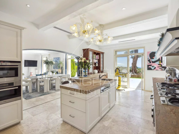 Outside, a magnificent landscaped garden surrounds the villa. The heated saltwater swimming pool (13x7m) comes with a fully equipped pool house: summer kitchen, barbecue, shower and toilet, for comfortable sunny days.