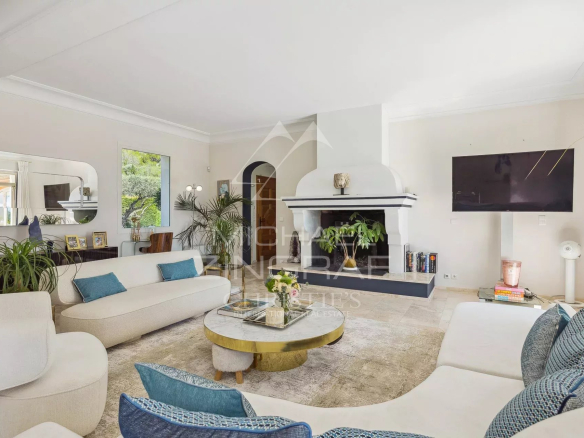 Built in 2002, this property of approximately 570 m² combines modern elegance, generous proportions, and high-end finishes. From the moment you enter, natural light takes center stage, flowing seamlessly through the living spaces. The spacious living room with a fireplace opens onto a welcoming dining room and a fully equipped open-plan kitchen, creating an inviting and refined space for entertaining. Large terraces extend from the living areas, offering opportunities to relax and enjoy the surrounding landscape.
