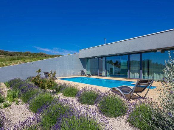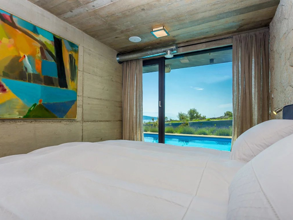 Are you looking for a unique architectural gem to make your home? We have the perfect solution! Take a moment to admire this 200 sq m, single-story, three-bedroom villa in the heart of Krk Island. Just 1 km from the town center, the largest town on Krk, and 1 km from the seafront, this brand-new property awaits its future home for someone with a vision. Krk Island is located in the northern Adriatic Sea, well-connected to the city of Rijeka in the Kvarner Bay, and is part of Primorje-Gorski Kotar County. Its ideal location places Krk at the epicenter of the region's natural beauty. It also connects to the historic Istra Peninsula and other islands like Cres and Rab. For those seeking a secluded yet easily accessible property, this is your canvas! The versatility of this villa is what makes it a truly unique architectural gem. A modern touch in a seemingly rural area makes this villa stand out from other properties in the region. A perfect fusion of industrial and traditional styles gives this villa its unique character. Concrete walls, combined with the magnificent wild landscape in the background, make it almost a piece of sculpture in the desert. A well-executed, spacious interior concept offers the necessary privacy while allowing us to experience the villa in an exciting and versatile way. The modern layout gives us the feeling of an urban lifestyle in a peaceful and wild setting. On the other hand, the outdoor space offers ample privacy while leaving room for future improvements. For those who wish to cultivate a garden or extend the terrace into an entertaining area, this property has the space and is well-equipped with everything needed to make this dream a reality. A real highlight is the view overlooking the bay and neighboring islands, the fresh air, and the wonderful natural surroundings.