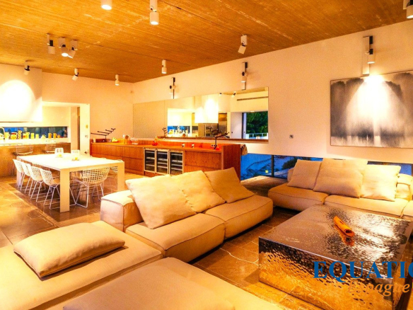 The combination of white walls and local stone, the large spaces, the quality of the materials, as well as the high-end finishes and equipment, inspires you to live serenely in this sumptuous villa with family and friends.