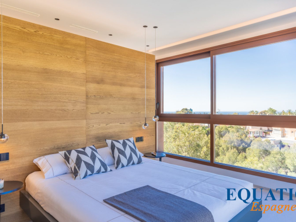The large, 3-meter-high bay windows with sun protection allow natural light and sea breezes to flood the rooms, creating a relaxing and welcoming atmosphere.