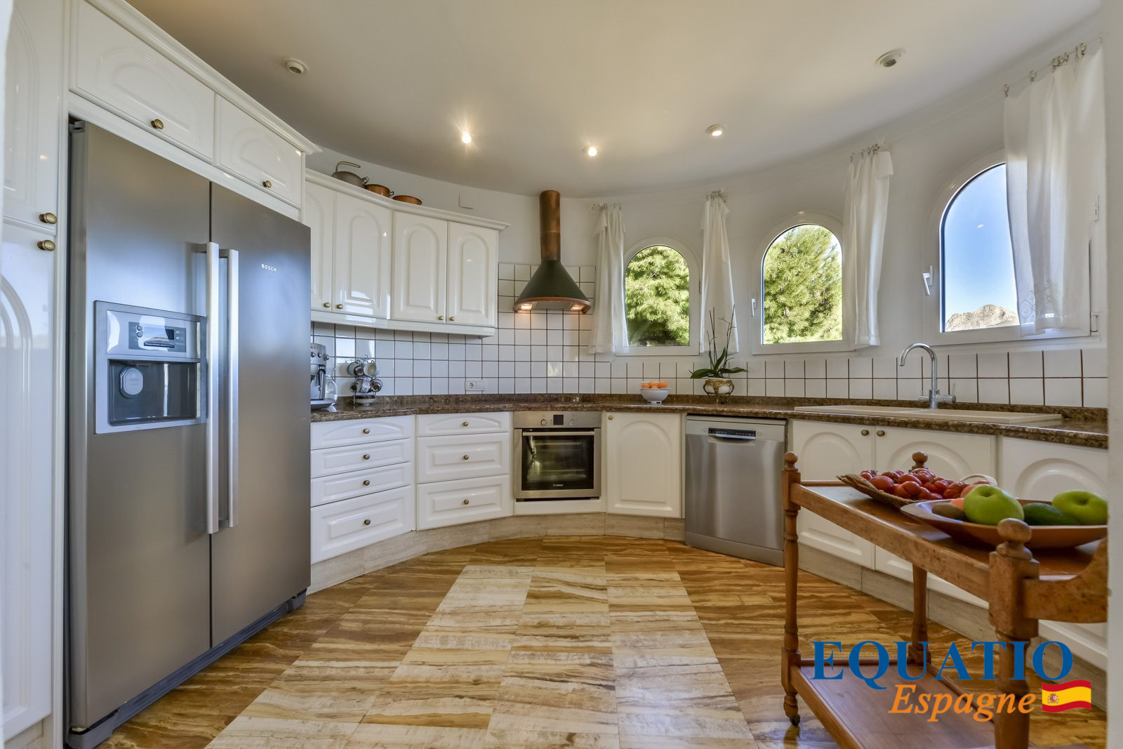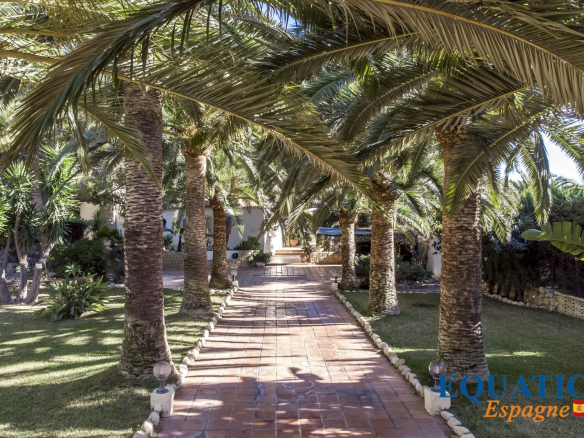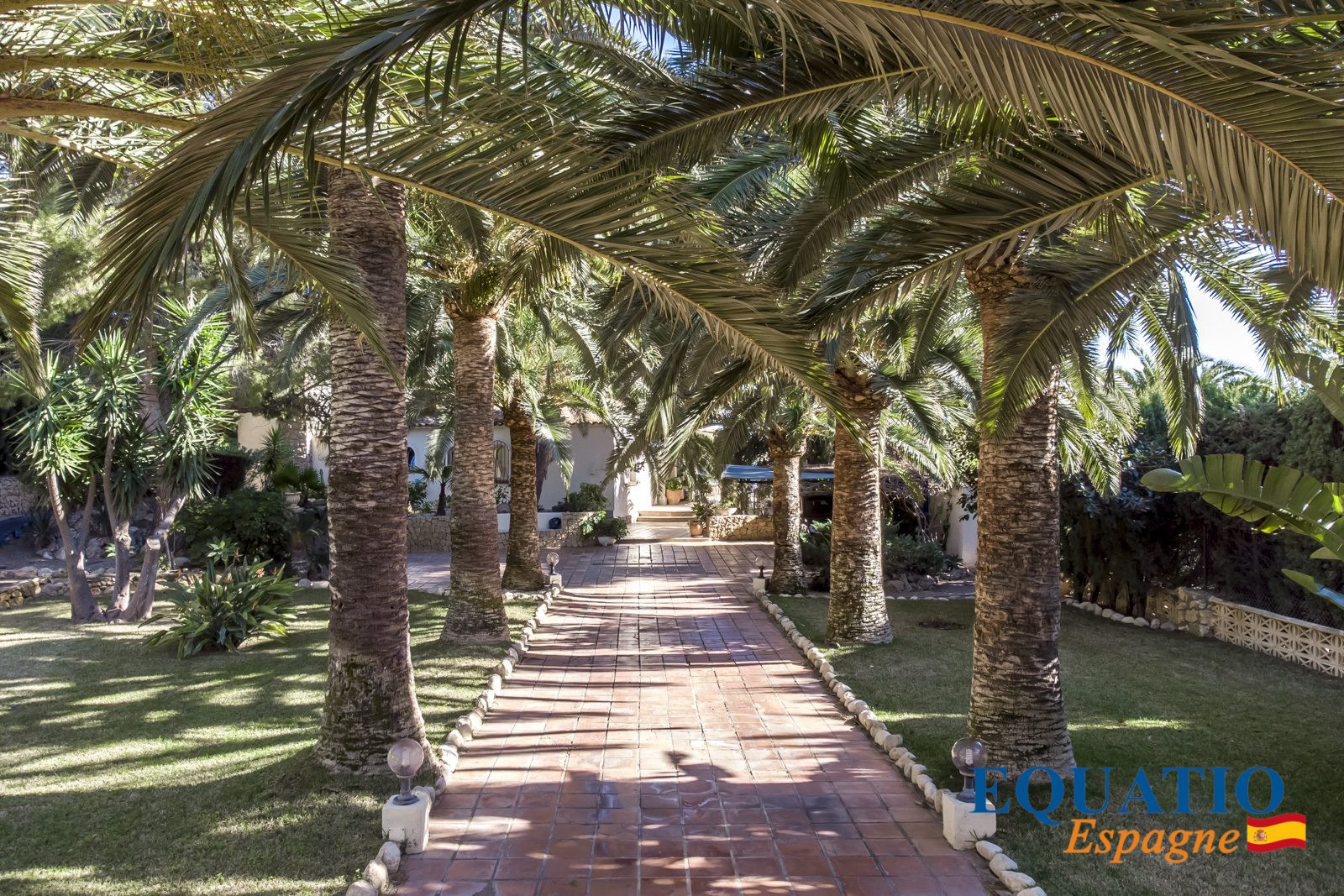 Completely flat terrain, with huge mature palm trees, lemon trees, orange trees, green lawns and a variety of tropical plants... offering sunshine all day long, both in winter and summer.