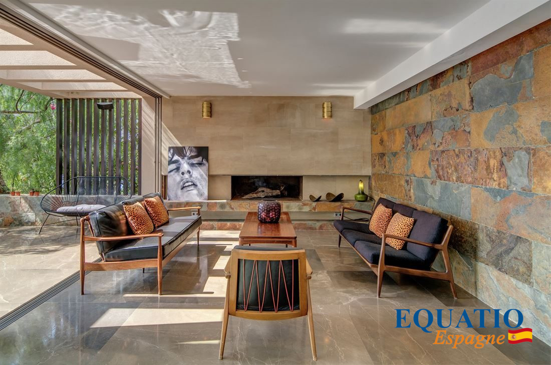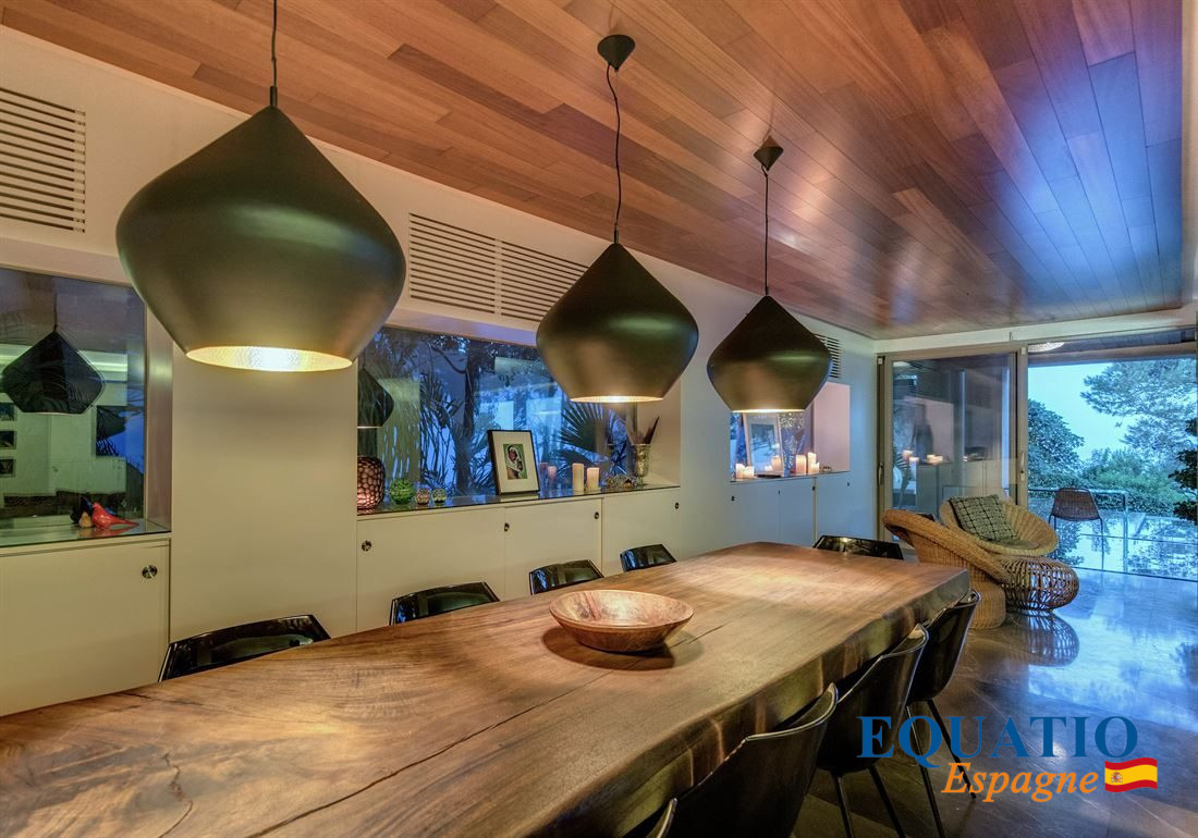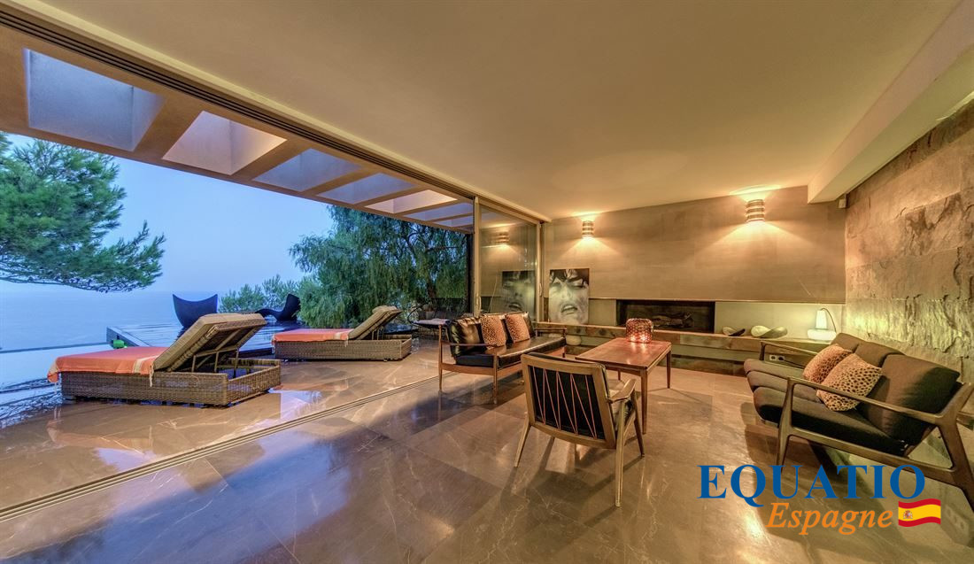 5 bedrooms, each with its own en suite bathroom, 1 guest bathroom/toilet, open-plan fitted and equipped kitchen opening onto the huge living-dining room with its fireplace, . . . and onto a beautiful terrace with its sumptuous heated infinity pool . . . Full sea view.