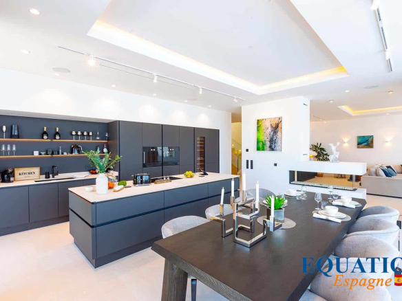 Huge main room for the living room, the dining room with fireplace and the entirely fitted American kitchen equipped with high -end devices.
