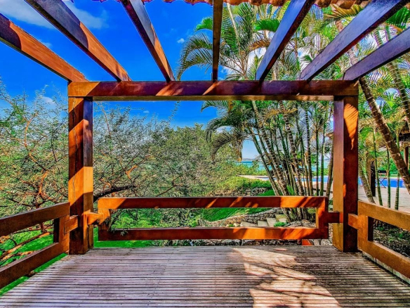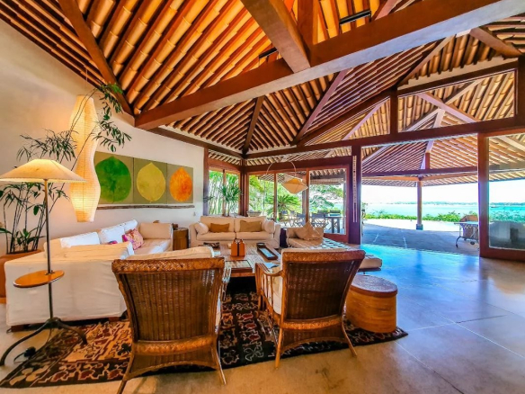 This property is very large, with a 7200 square meter garden and breathtaking ocean views, offering private beach access.