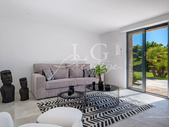 Nestled on a magnificent, flat, and wooded plot, this property enjoys a peaceful and privileged setting, while remaining within easy reach of shops, golf courses (3 minutes away), and beaches (5 minutes away).