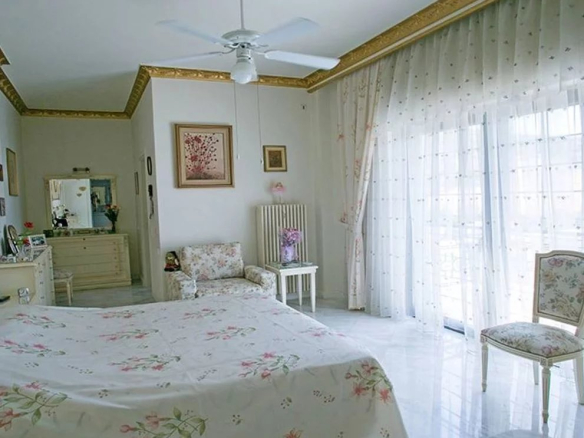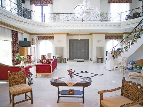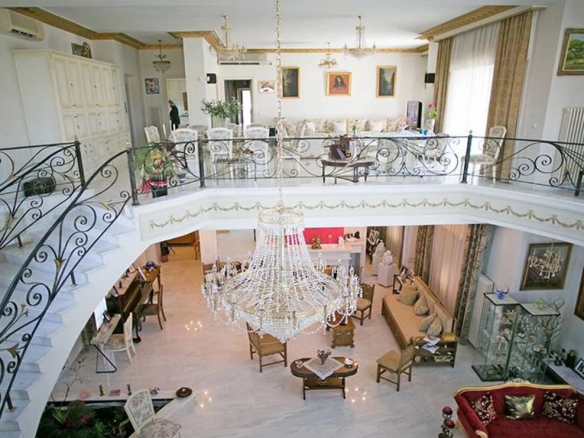 A marble villa in Vari with spacious areas and a unique taste. It consists of three levels with a total constructed area of 963 m². on the plot of 3.933 m² Analytically: On the first floor there are 4 bedrooms (3 main), 4 dressing rooms, 3 bathrooms, 1 spacious kitchen, living room and dining room. On the ground floor there is a main living room with a vast marble fireplace, an impressive marble staircase leading to the first floor, a room with a jacuzzi, an office and a separate apartment with 4 bedrooms (2 main), 3 bathrooms, changing rooms, living room and dining room. The basement is made up of 4 to 6 garage spaces of 158 m², warehouses, a laundry room and a sports or games room. Other features: elevator, autonomous heating system per floor, VRV air conditioning, electric roller shutters, security doors, alarm system for interior and exterior spaces, and a beautiful garden with privacy, barbecue. A swimming pool, tennis court or helipad will also be built.