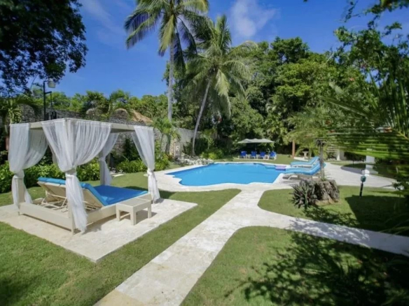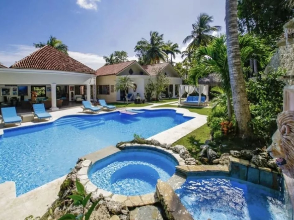 Nestled within a pristine beachfront community, the Caribbean Dream Villa offers luxurious living in 557 square meters. This elegantly designed retreat features five spacious bedrooms, six bathrooms, a private pool, two Jacuzzis, and outdoor living areas that blend seamlessly into the tropical surroundings. Immerse yourself in the tranquility of the palm-fringed gardens and experience the ultimate Caribbean getaway near Cabarete and Sosua.