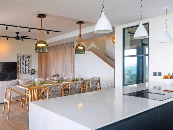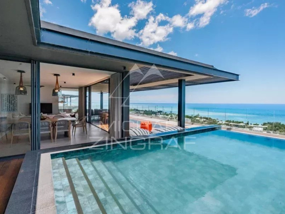 The Legend Hill villas offer a majestic living space, with an outdoor terrace and private infinity pool, perfectly integrated with the pristine natural surroundings and the lagoon, providing a breathtaking view. Exceptional interior features include spacious living areas, an open-plan kitchen, a winery, five bedrooms and bathrooms, a laundry room, and a dressing room. Here, luxury and comfort combine to create a prestigious living environment. The refined décor offers a contemporary reflection of Mauritian tradition.