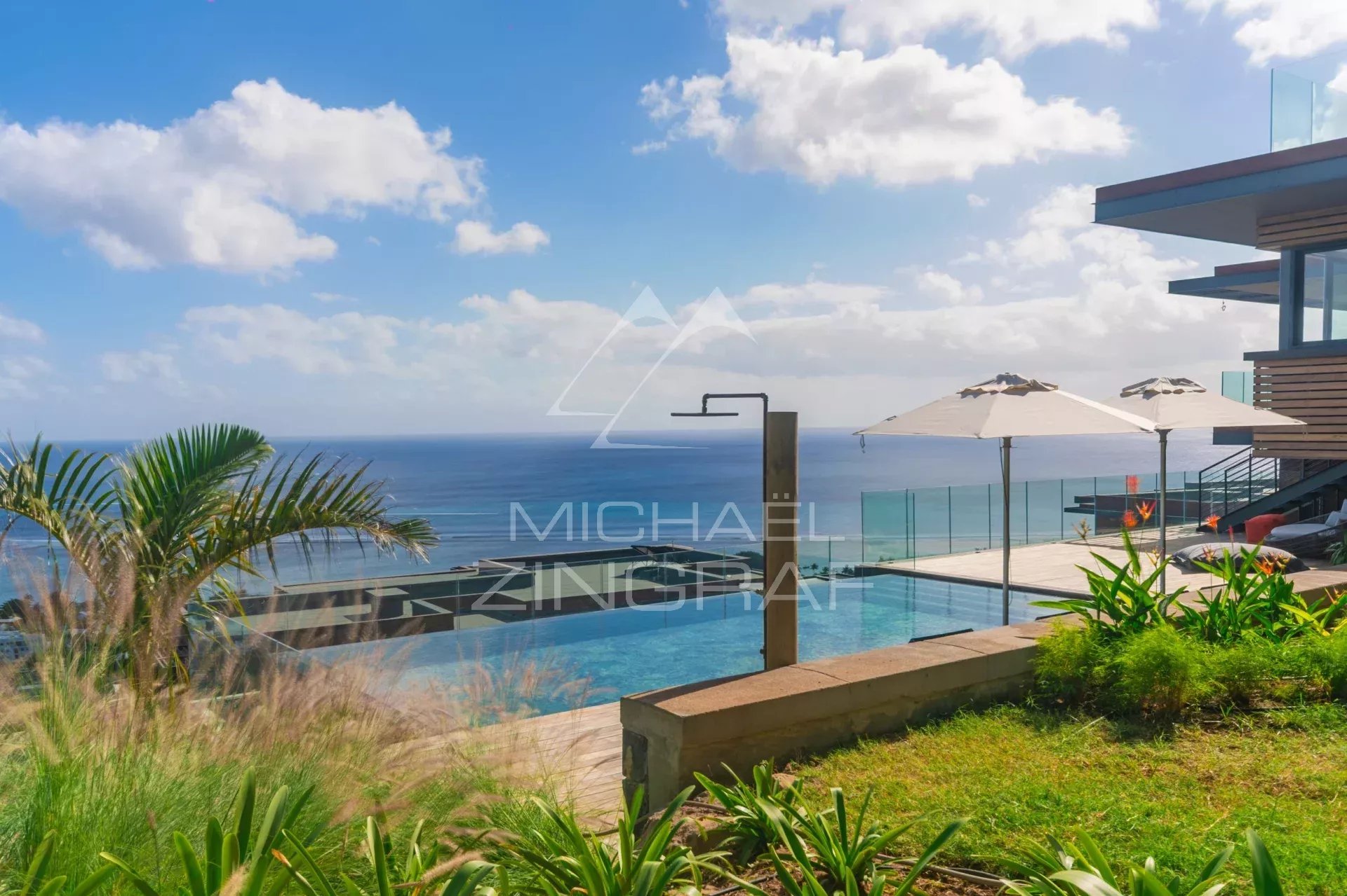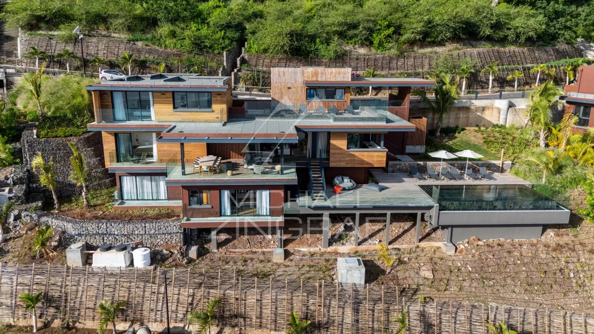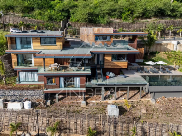 Villa Chamarel is a sumptuous living space, complete with a terrace and infinity pool. The spacious living areas offer sophisticated interior design with an open-plan kitchen, wine cellar, bedrooms with en-suite bathrooms, dressing room, and laundry room. Noble materials and ethnic motifs combine to create a decor of unparalleled beauty.