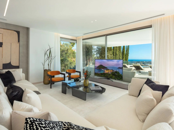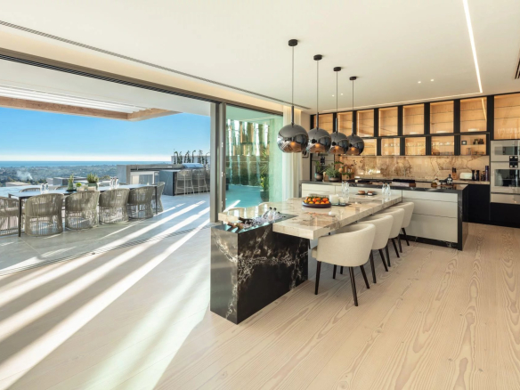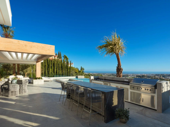 Complete with five bedrooms, including a spectacular master suite with stunning sea views and a large, custom-designed dressing room leading to a luxurious en suite bathroom.