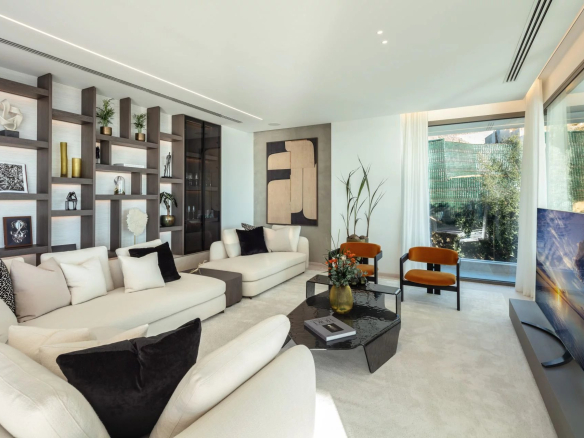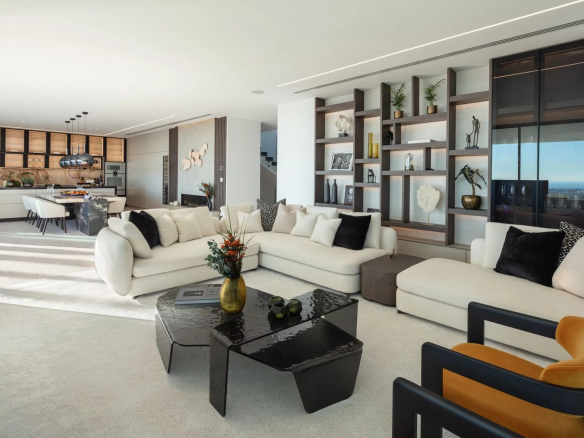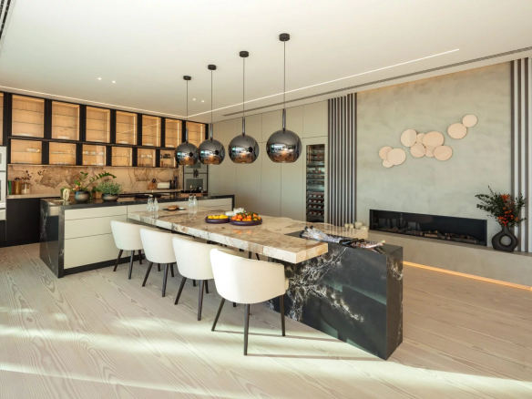 Southland welcomes you into an elegant open-plan living area, furnished and decorated with a neutral color palette and meticulous attention to detail. The dining room leads to an exquisite bespoke gourmet kitchen, finished to the highest standards and equipped with top-of-the-range appliances.