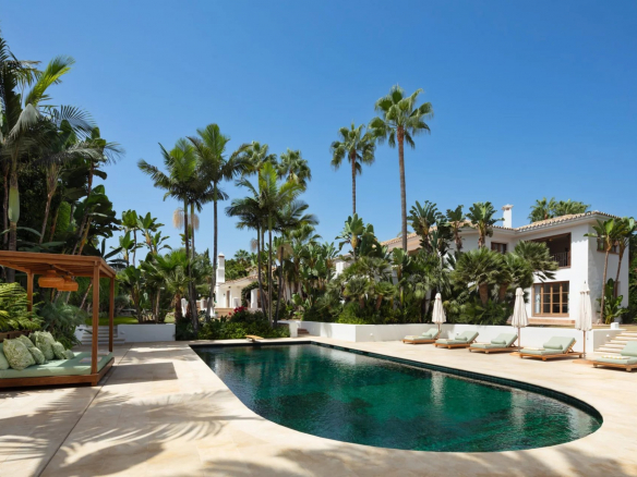 This impressive villa boasts eight spacious bedrooms, easily accommodating large families and their staff, offering a warm retreat during those long summers in Marbella.