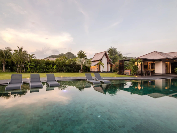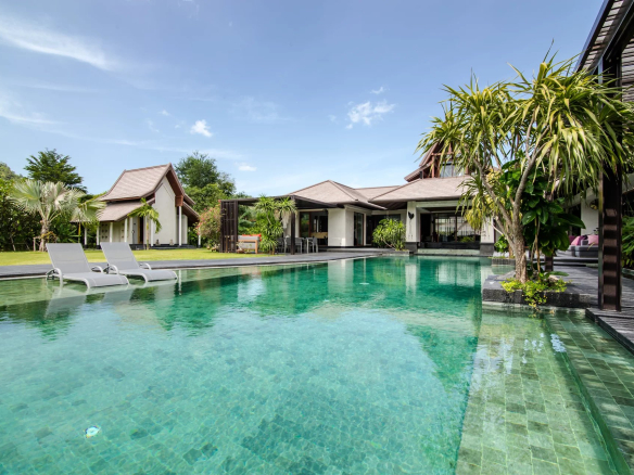 Located in Baan Ing Phu, masterful design and modern luxury are uniquely embodied in this 6-bedroom villa (700 m²) suitable for any type of vacation: family, friends, golf, etc.
