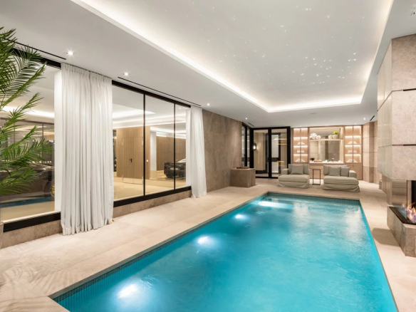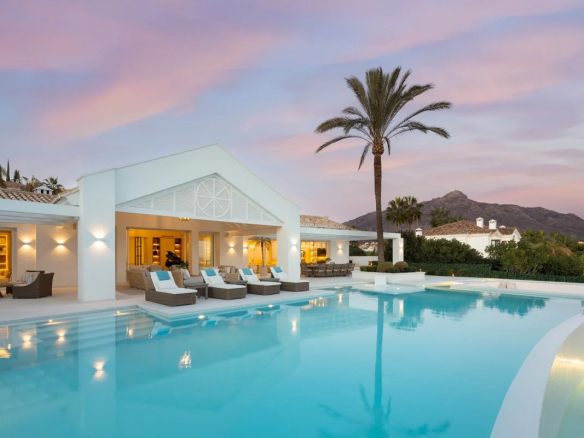 Nestled above the Mediterranean Sea, Villa Adriana is a timeless retreat inspired by traditional Ibizan architecture. Located in the prestigious La Cerquilla community in Nueva Andalucia, it boasts breathtaking views of several golf courses, La Concha beach, and the sea. The most exclusive area of Nueva Andalucia features spectacular properties all situated within a gated community and close to all amenities, including Puerto Banús with its 24/7 lifestyle, luxury boutiques, restaurants, nightlife, and proximity to the beach and Marbella. With over 1,000 m² of built area on a 3,000 m² plot, Villa Adriana offers amenities found nowhere else in Marbella. The new owners can enjoy an indoor pool with a steam and infrared sauna, as well as a jacuzzi, a cold plunge pool, a gym, a wine cellar, a screening room, a games room, a massage room, a relaxation room, and a glam room including a hair and makeup salon. The main level offers 6 bedrooms and 7 bathrooms, a large gourmet kitchen, a dining room, a TV room, and a spacious living room overlooking the immaculate garden. The beautifully landscaped grounds feature a spacious patio with an infinity pool, floating seating area, and pool house. While the property offers unique entertaining spaces for residents, guests, children, and families, Adriana still provides a profound sense of relaxation within its own peaceful sanctuary, a contrast to the outside world, with a design and environment that bring calm and harmony. Villa Adriana: a millennium of art, architecture, and engineering under one roof. A truly rare property not to be missed!