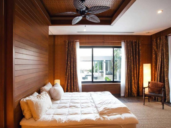 At the rear of the villa is a service area with laundry facilities, a Thai kitchen, and maid's quarters.
