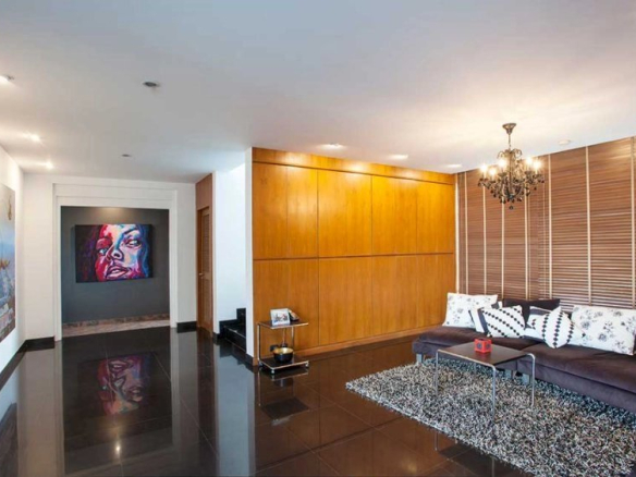 Spacious living room with double-height ceiling.
