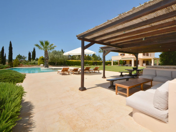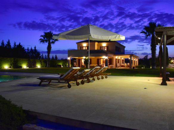The villa's classic tiled roof, inviting stone facades, and warm earth tones combine to create a welcoming and visually pleasing ambiance.
