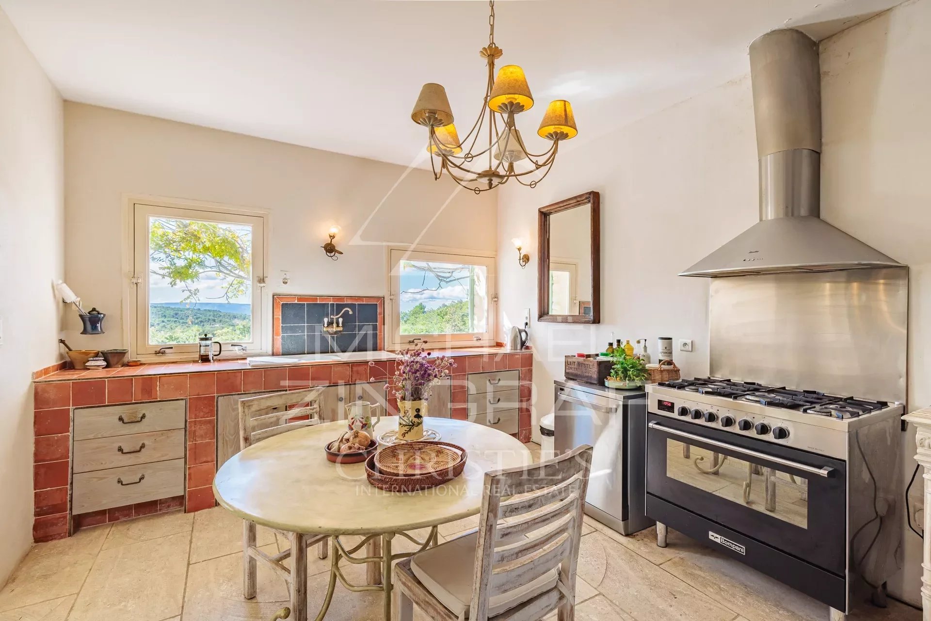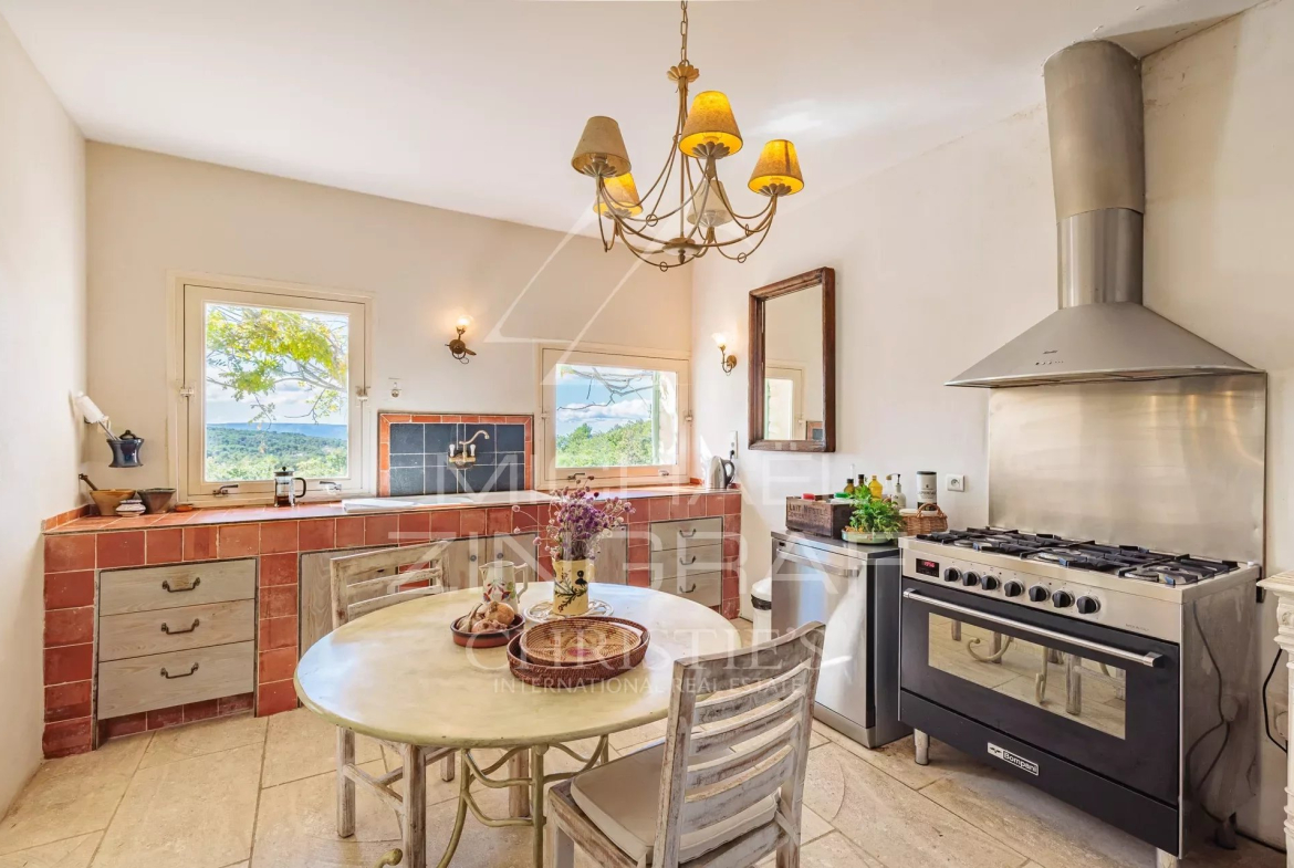 Inside, the house, with approximately 276 square meters of living space, boasts beautiful, light-filled rooms opening onto a magnificent garden with breathtaking views. The sleeping area comprises five bedrooms and four bathrooms, ensuring everyone's comfort. The entire property blends Provençal charm, elegance, and understated style.