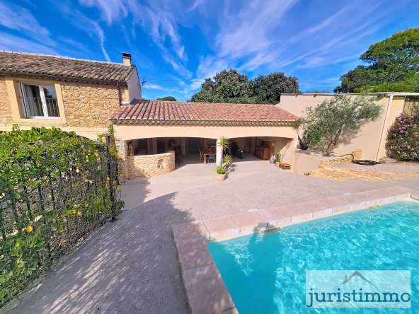The exterior spaces invite relaxation: a 70 sq m covered terrace with a summer kitchen, a 10 x 5 m swimming pool, a convertible garage, a carport, and a magnificent landscaped garden (fig trees, olive trees, cypress trees, pine trees, etc.).