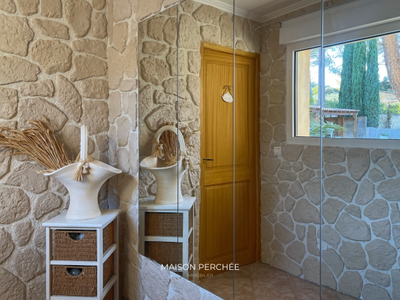 On the garden level, a brand-new, independent 52m² apartment includes two bedrooms, a living room with a kitchenette, and a covered terrace that also shares this stunning view of the village: the perfect place for guests, rental, or offering a private space to a loved one.