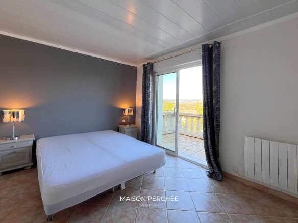 On the other side of the living room, a second terrace overlooks the grounds and reveals a spectacular view of the village of Carcès and its surroundings, like a living painting that changes with the passing hours.