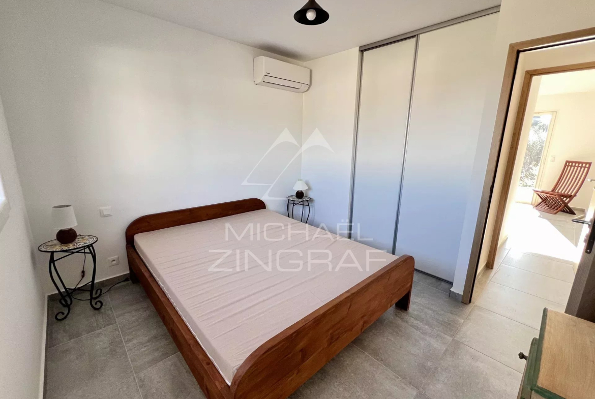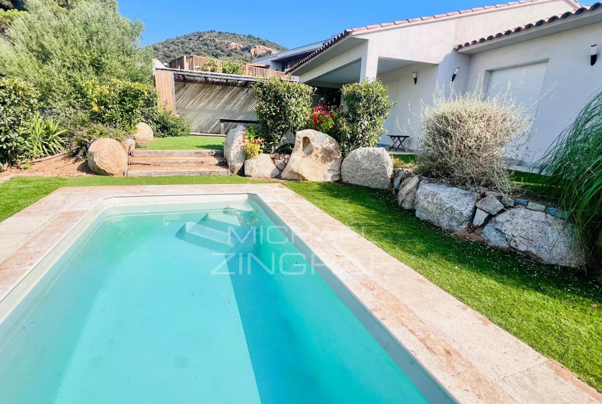Ideally located between Pinarello and Saint-Cyprien, just 3 km from the beaches and 12 km from Porto-Vecchio, this contemporary villa of 109 m² seduced by its location and its refined services.
