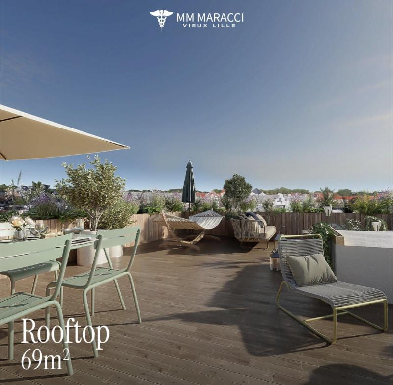 The property's highlight: a rooftop terrace with a commanding view of Old Lille. A place for relaxation, entertaining, or contemplation, this rooftop is a true extension of the living space.