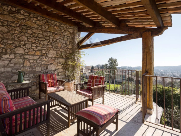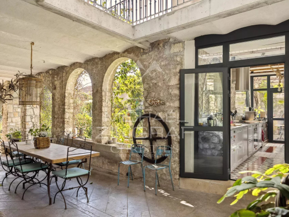 In the heart of the sought-after village of La Colle-sur-Loup, this exceptional 354 sq m (3,775 sq ft) residence captivates with its period charm, enhanced by a refined renovation with high-end amenities.