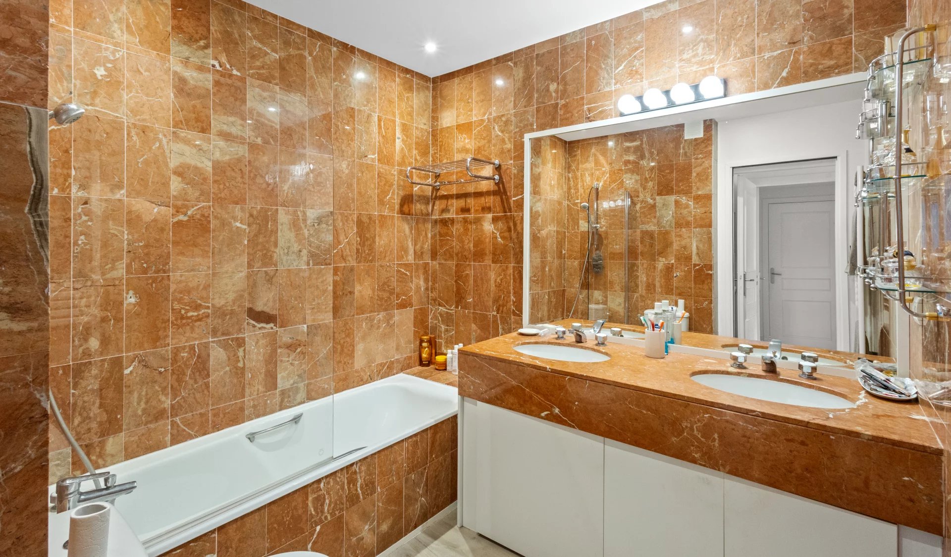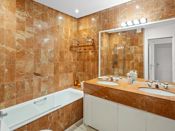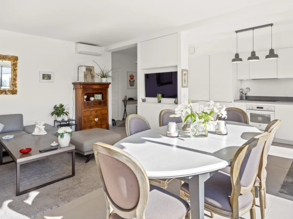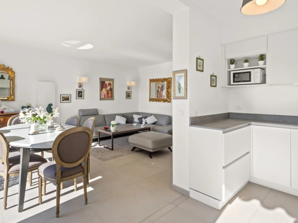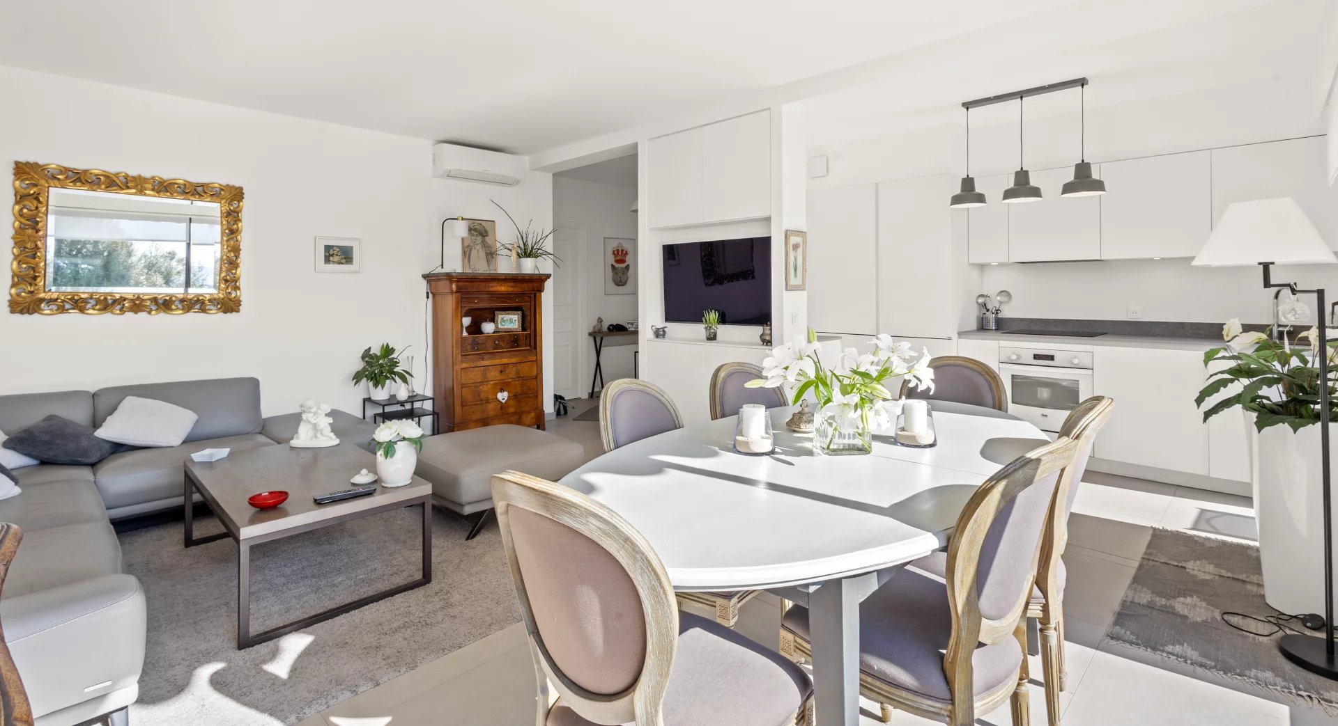In a high-end residence with caretaker, landscaped park, swimming pool and tennis, this 3-room apartment of approximately 75.38 m² (Carrez Law), completely renovated, offers a privileged living environment.