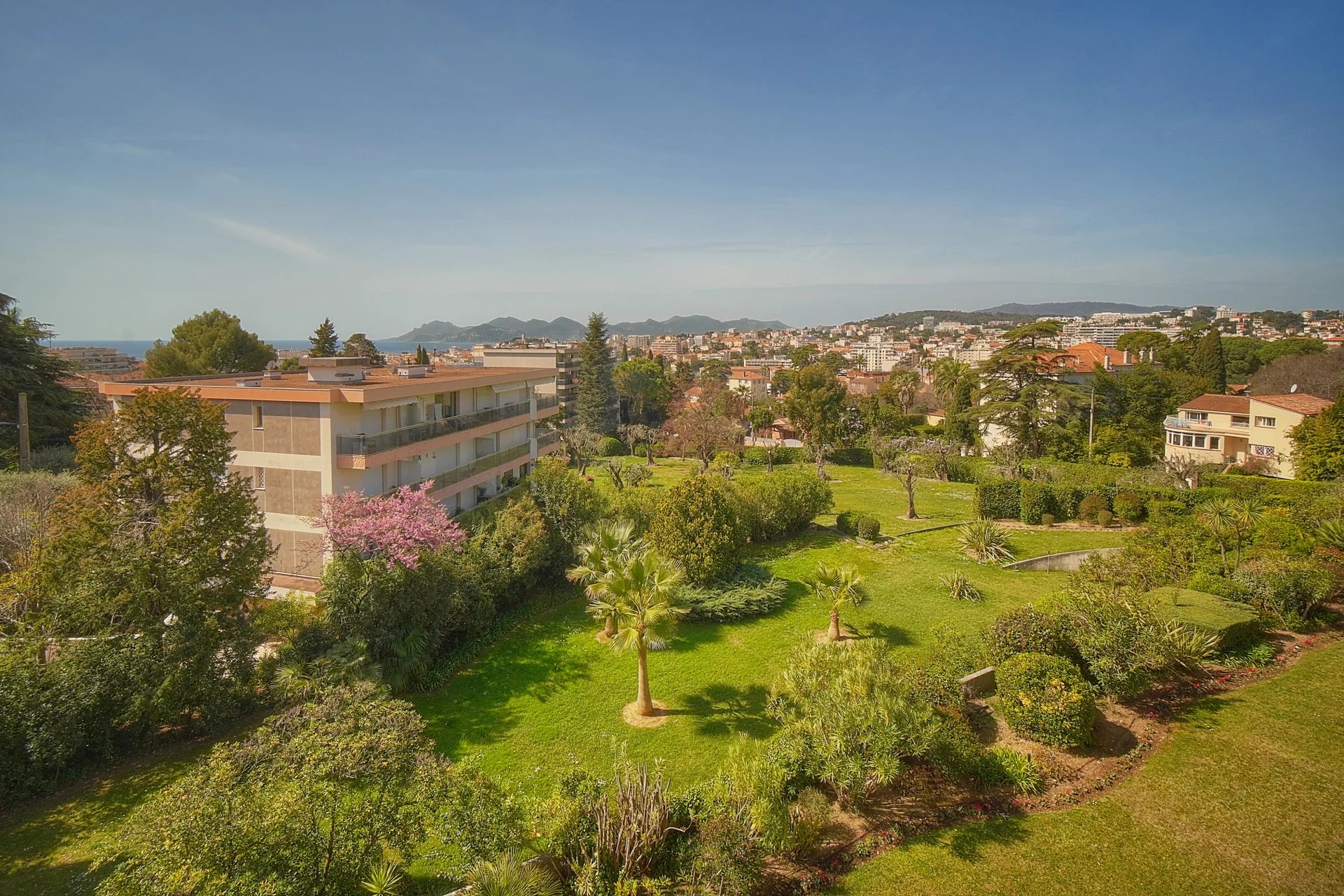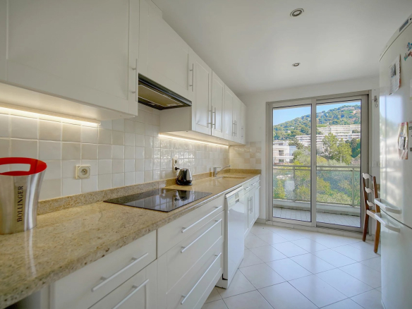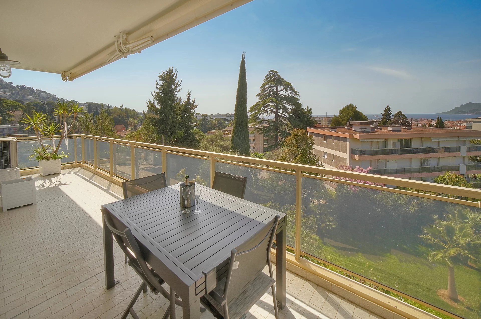 a third bedroom opening onto a second north-facing terrace, offering a unique panorama of the heights of Cannes and the Californie district.