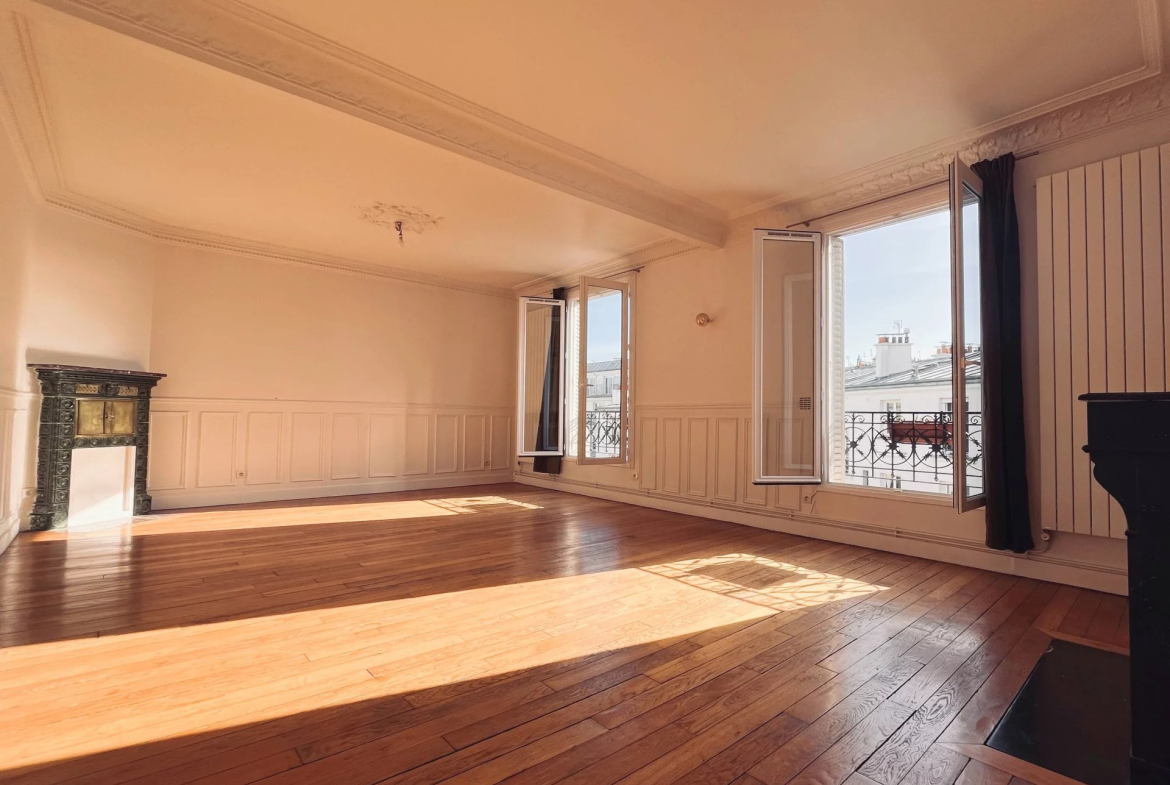 Located on the 5th and top floor of a beautiful building with an elevator, this 85 sq m (915 sq ft) apartment offers a rare living environment in Paris, characterized by exceptional natural light and absolute tranquility. The apartment comprises a spacious entrance hall with ample storage, a double living room (with the possibility of creating a third bedroom), a fitted and equipped kitchen, two large bedrooms, a shower room, a separate WC, and plenty of additional storage.