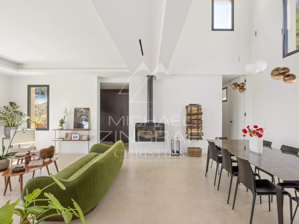 Exclusive – Recent modern Provençal property, ideally located in a quiet cul-de-sac, offering panoramic views of the sea, the surrounding hills and a magnificent centuries-old chapel.