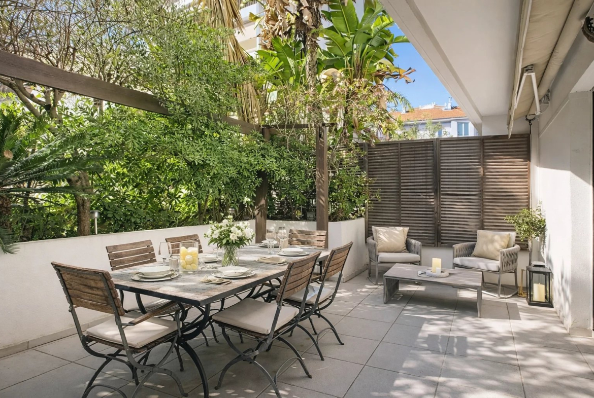 In the heart of an intimate residence composed of only three semi-detached houses, nestled in the sought-after and particularly peaceful area of Basse Californie, this 115 m² Carrez law triplex villa impresses with its harmonious layout and privileged location, a few steps from the Croisette, shops, schools and beaches.