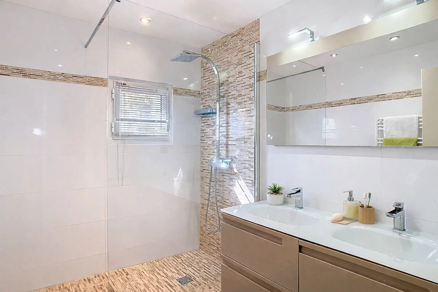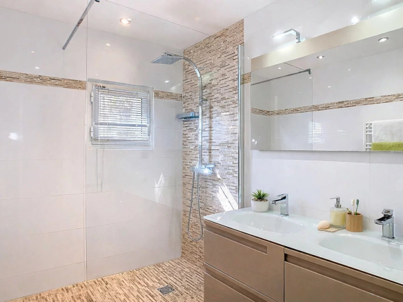 Fully air-conditioned, this villa also features a 37 m² double garage, a cellar and an equipped laundry room.