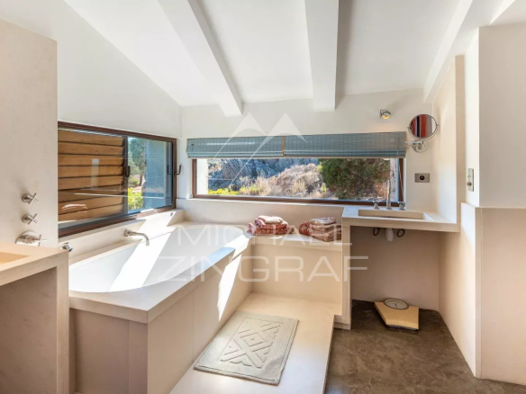 The breathtaking panoramic sea view is complemented by an atmosphere of absolute tranquility. The property comprises a main house, a separate caretaker's cottage, and an elegant 75 sq m pool house. The total built area is 418 sq m, of which 320 sq m is living space.