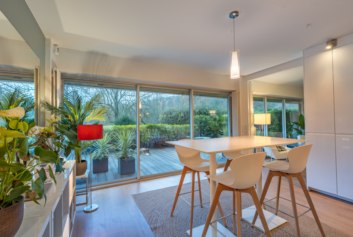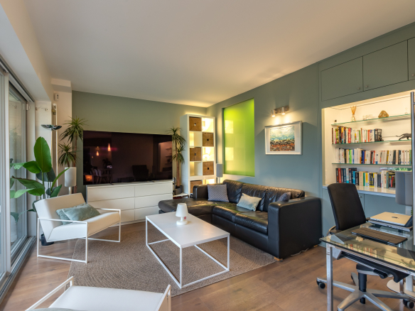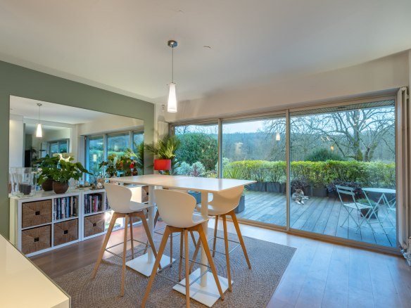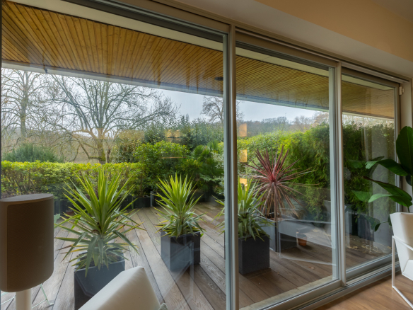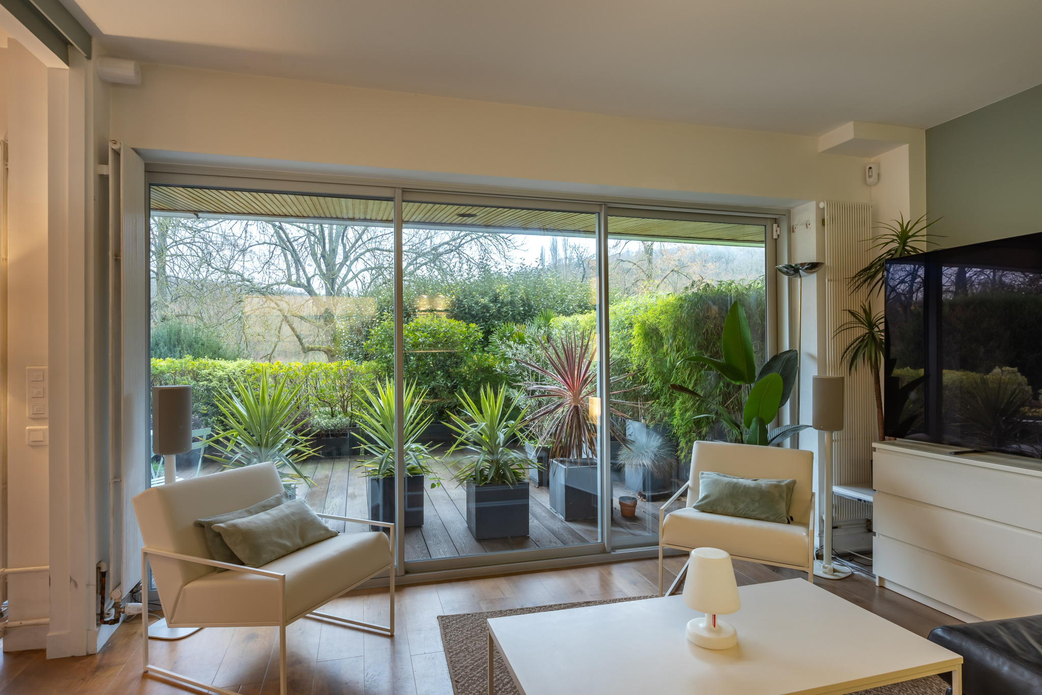 VILLE d'AVRAY (92140), For sale: a unique 70 sq m ground-floor apartment with an adjoining 25 sq m veranda and an 85 sq m corner terrace, partially covered and facing southeast. Enjoy breathtaking views of the VILLE d'AVRAY ponds, known as "Les Étangs de COROT"! Two underground parking spaces, including a double space, and a cellar complete this property. A true home-like feel! Located in a small, secure, upscale condominium with a caretaker and private green spaces extending directly from the apartment's grounds. A complete change of scenery with ample walking opportunities and absolute tranquility. The apartment is tastefully furnished with high-end amenities and playful features that, through the interplay of light and movable elements, can create a variety of atmospheres. It is currently laid out as an entrance hall, a 16 sq m living room (which could be converted into a bedroom), and a small bedroom. Bathroom of nearly 8 sq m with shower and bathtub. 8 sq m kitchen opening onto the living room of approximately 25 sq m, facing south, and the veranda of the same size facing east (condominium agreement for the installation of reversible air conditioning). Ample storage completes the property. Elevator access to parking and cellar. Suitable for use as a professional practice, subject to obtaining the necessary permits. Schools, shops, and restaurants within 1 km. Sèvres/Ville d'Avray train station; line L to Paris Saint-Lazare.