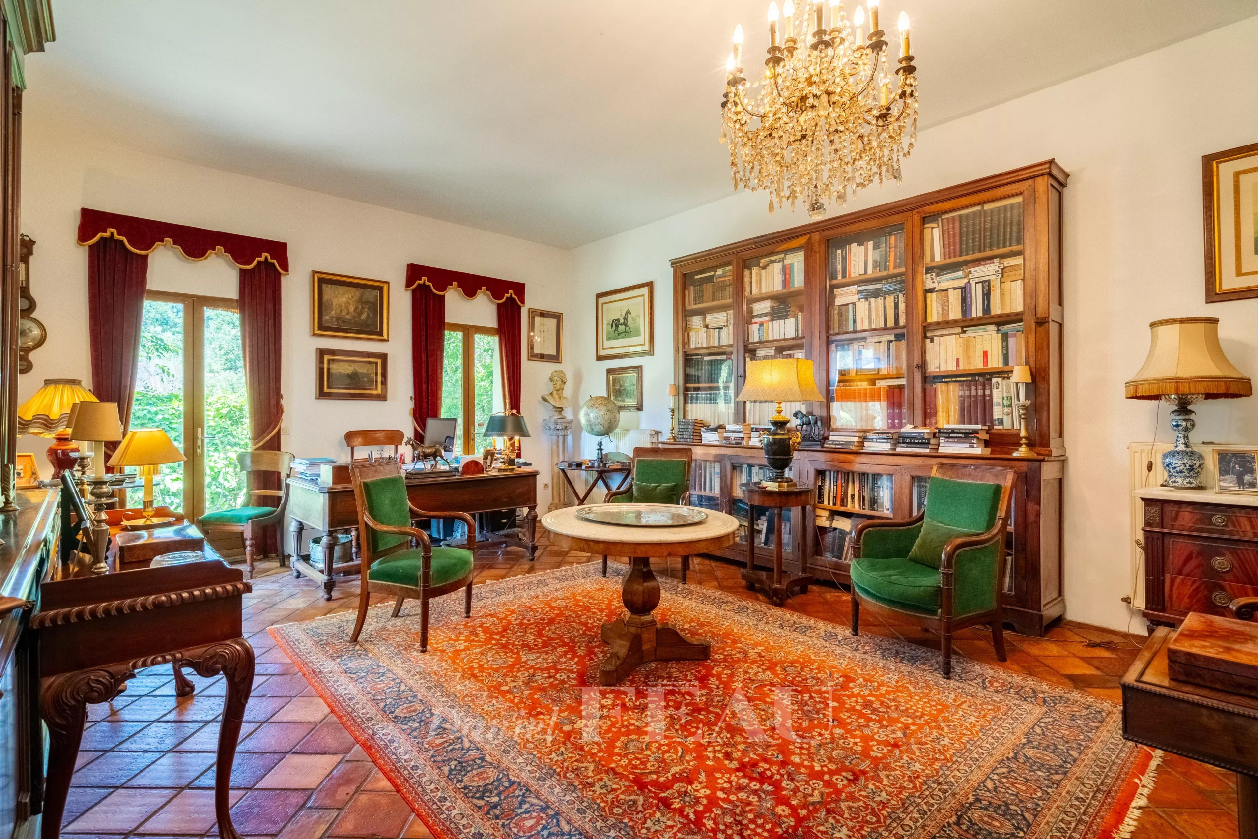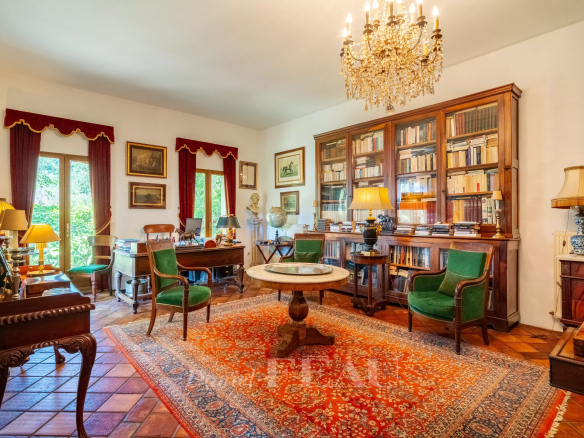 On the ground floor, a spacious, light-filled living room, a charming library, and a small shower room.