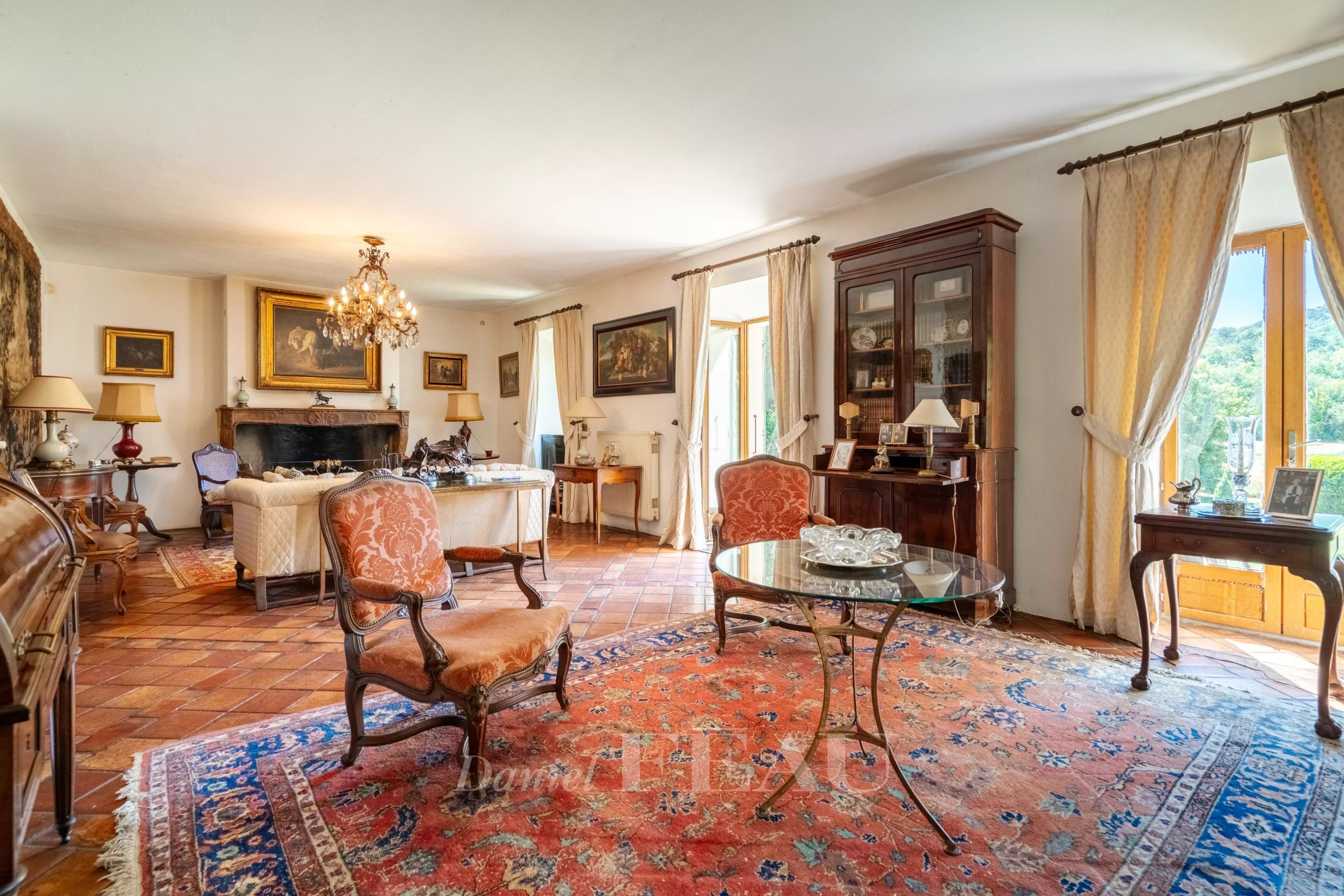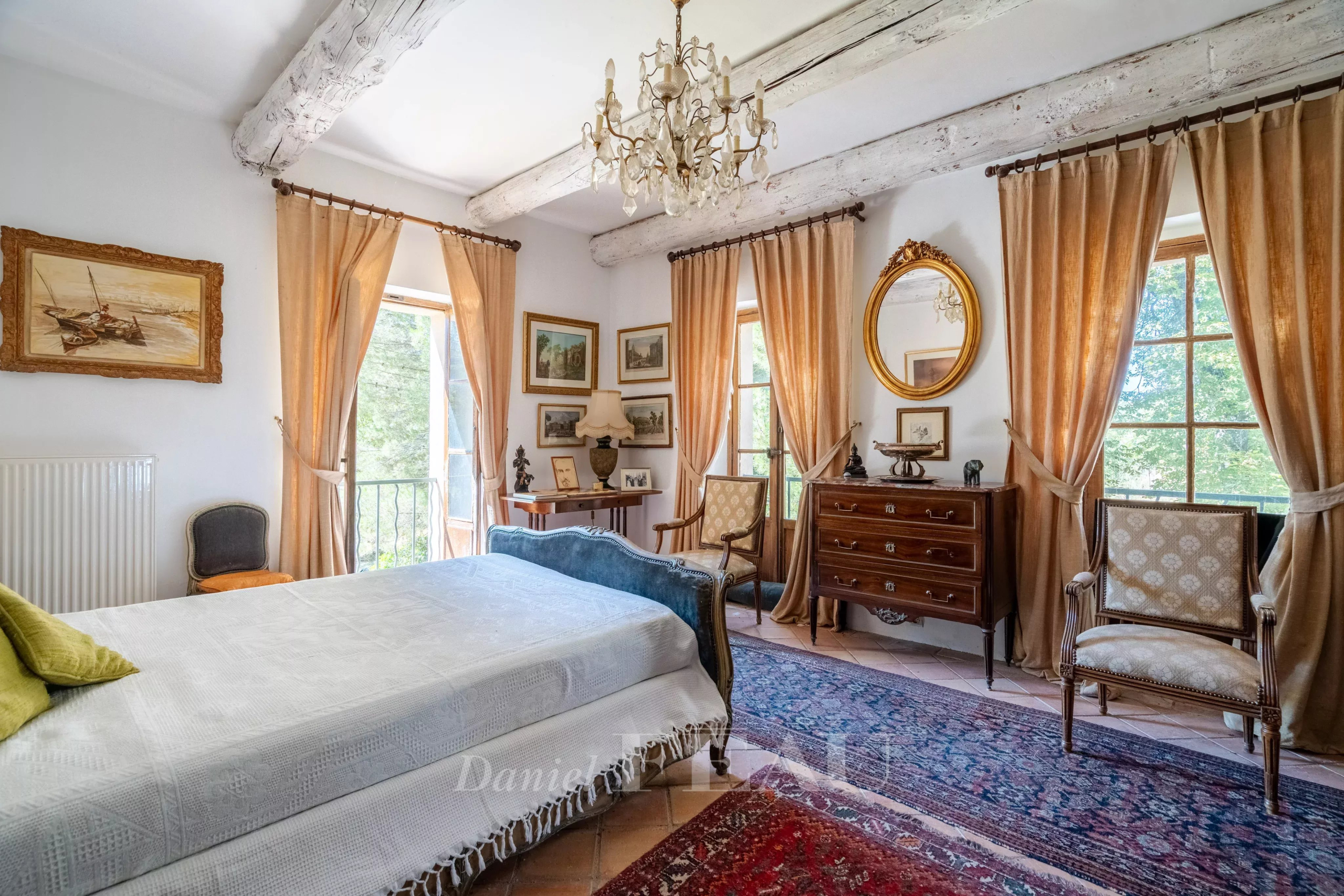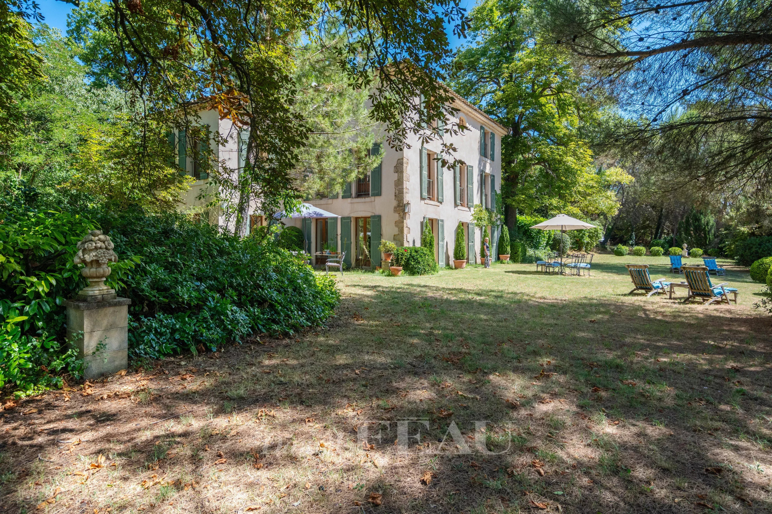 Just 50 minutes from Aix-en-Provence, in the heart of a rural and unspoiled setting, this elegant bourgeois house is revealed at the end of a discreet little road. Its imposing facade immediately announces the character and history of the place.