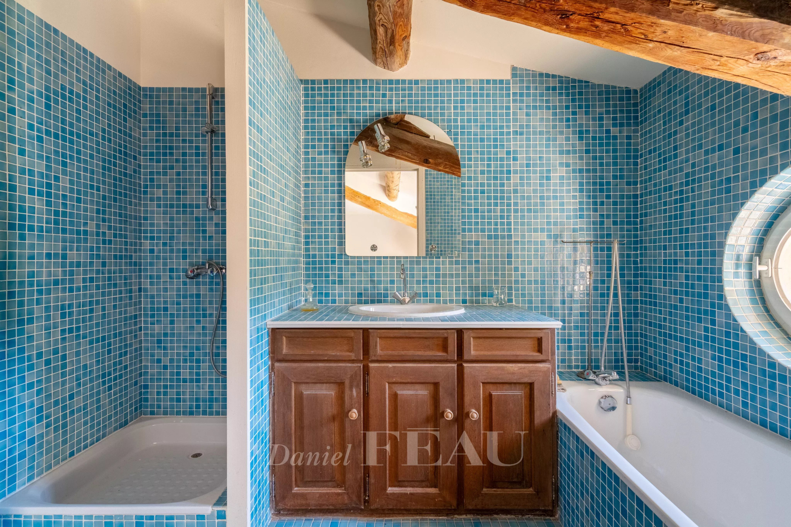Outside, the gentle murmur of a fountain sets the rhythm of the days, while a round pond adds coolness and a touch of whimsy to the landscaped garden. Set back from the main house, a charming pebble-built annex, currently used as a workshop, offers wonderful possibilities for future use: a guest house, a reception area, or a creative space…