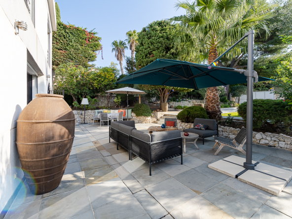 In the heart of Roucas Blanc, superb family home of 219 m2 living space on two levels, on a plot of 1000 m2, in a very sought-after quiet area yet close to Endoume and all its amenities. This pretty, fully renovated residence benefits from a superb flat garden with lush vegetation as well as a recently created swimming pool.