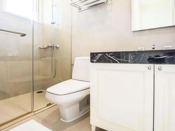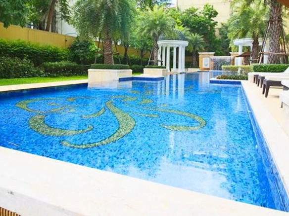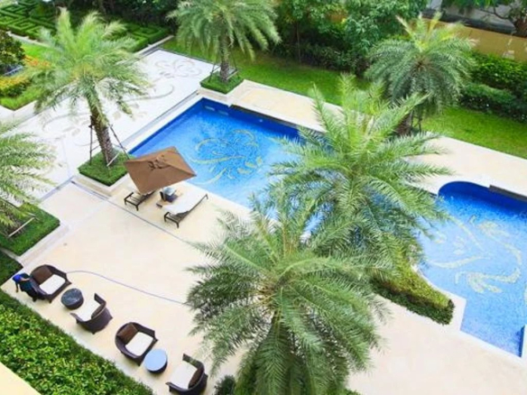 The luxury 2-bedroom Royce Private Residences apartment for sale is located between the exclusive Asok and Prom Phong districts and offers spectacular panoramic city views and a stylish contemporary design spread across 112 square meters of luxurious living space. Royce Residences is situated on Sukhumvit 31, with easy access from Sukhumvit 23. Located in the heart of Sukhumvit, Royce Private Residences boasts an abundance of boutiques, restaurants, wine bars, fitness centers, and shopping malls, all within a comfortable 2-5 minute drive of the project. Terminal 21 shopping mall is located directly at Asok BTS station, with Robinson Mall also just a few hundred meters from the condo. A True Fitness gym is located in the Exchange Tower building at Asok BTS station. The upscale luxury shopping mall, The Emporium, is also just a 5-minute drive away. Several international supermarkets are also nearby, including Foodland on Sukhumvit Soi 16 and Villa Market on nearby Soi 33. The location of this project is both highly exclusive and convenient. Within the condominium plots of this exclusive development, the developers have created the largest private formal garden available in downtown Bangkok, offering an elegant feeling of being immersed in a classic English garden. Lush green lawns and mature landscaped tropical gardens provide the perfect place to escape the hustle and bustle of city life. The project also includes numerous world-class amenities for residents, such as a large 50-meter swimming pool with Jacuzzi pavilions and a private clubhouse. There is also 24-hour security, a reception and lobby, a gym, a games room, a piano, a sauna and spa, a cigar lounge, a library, a children's playroom, a basketball court, a yoga studio, and extensive communal tropical gardens. This luxurious residence offers spacious balconies with stunning city views from a high floor, a contemporary open-plan living area with a comfortable L-shaped leather sofa, and a fully equipped Western-style kitchen serving a sumptuous acacia wood bar and dining area. Overall, this uniquely designed condominium offers turnkey luxury living in a prestigious zip code.