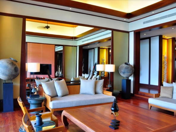 The 4 -bedroom properties are rare in Phuket. However, we have one for you, and it comes with a huge terrace and a breathtaking view of the sea. No, I am not exaggerating. Imagine if you want, a luxury apartment with more than 431 m² of covered surface. Huge ceilings, beautiful parquets and hardwood colonnades, Jim Thompson silk wall panels, Thai artefacts, you have the idea, I'm sure.