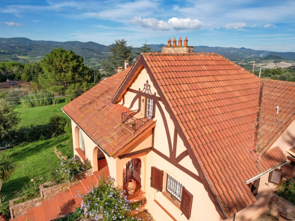 The property, which enjoys beautiful views over the surrounding countryside to the sea, is located in a residential area on the edge of Montescudaio, a characteristic medieval village included among the “most beautiful villages in Italy” and around ten of kilometers from the coast of the Costa degli Etruschi, about 1 km from the historic center of the town where all the main services are located (schools, bank, post office, grocery stores, commercial activities and restaurants).