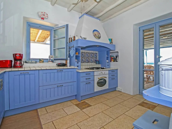 The villa is located in the most secluded and desirable part of Paros. The main house comprises a spacious double living room facing the sea, a small dining room, and a beautiful Cycladic kitchen. A short walk away are two bedrooms with en-suite bathrooms.