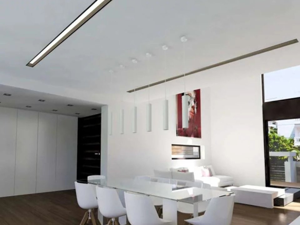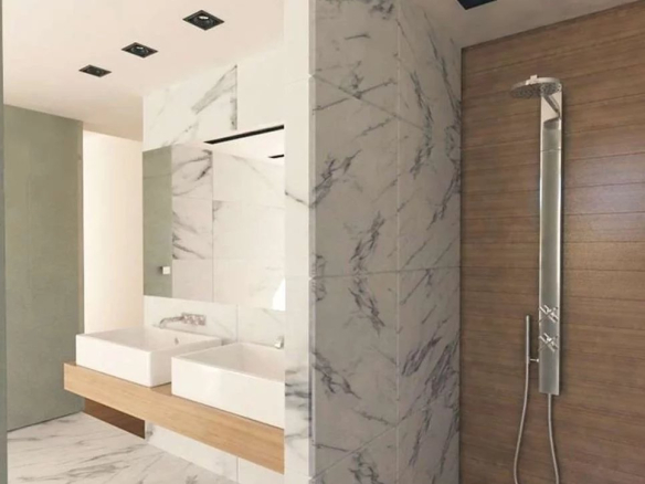 The main entrance on the ground floor (141 m²) leads into an open space. A spacious and bright living room with a central fireplace opens on two sides offering fabulous views. A little further on are the future dining room and a functional space for the kitchen. Floor-to-ceiling windows and glass door cases allow the warmth of the Athenian sun to embrace the interior and enhance the view of the greenery beyond. The main living room leads to the front garden and the rear garden which can accommodate an outdoor seating area with barbecue and sun loungers next to a 35m² swimming pool terrace.