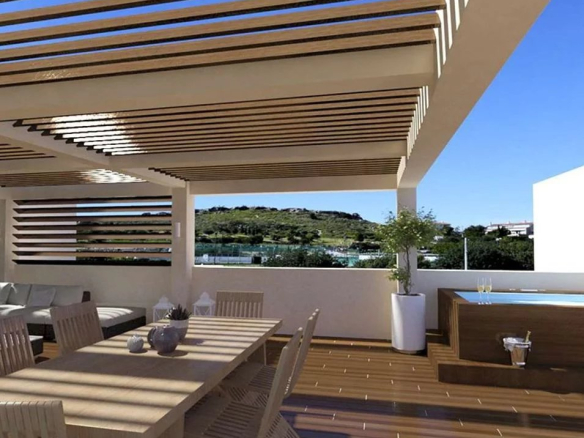 A staircase leads to a patio on the terrace (92 m²) which can accommodate an outdoor hot tub and a lounge area with panoramic mountain and sea views.