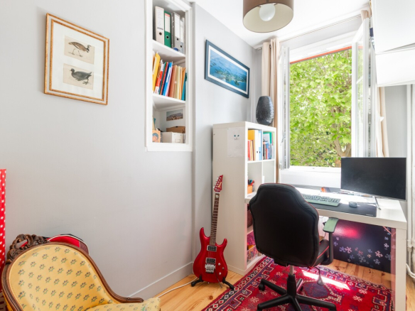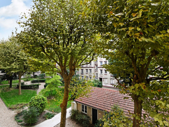 Numerous advantages include: a central location, absolute tranquility, views over a small courtyard and a pleasant garden, an optimized layout, period features (moldings, fireplaces, parquet flooring), a resident caretaker, and a bicycle and stroller storage area.