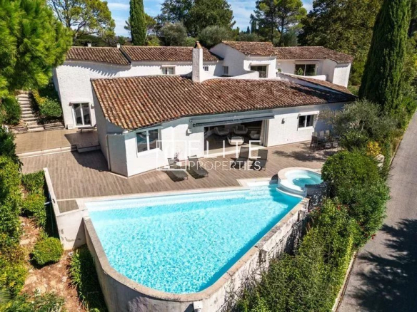 Mouans-Sartoux: In the residential area of Castellaras, detached villa of 588m² on a plot of 2730m² with swimming pool, located in a secure estate.